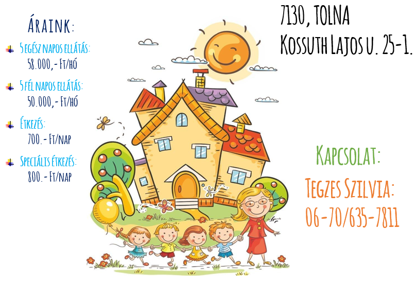 Fontos szempont számunkra a gyermekek egészsége is, így saját konyhánkban minőségi alapanyagokból készült ételeket fogyasztanak a gyermekek. Sok zöldséggel, gyümölccsel és helyi termelőktől beszerzett alapanyagokkal készítjük az ételeinket.