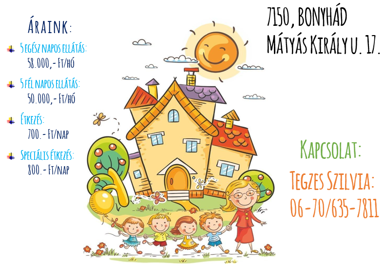 Fontos szempont számunkra a gyermekek egészsége is, így saját konyhánkban minőségi alapanyagokból készült ételeket fogyasztanak a gyermekek. Sok zöldséggel, gyümölccsel és helyi termelőktől beszerzett alapanyagokkal készítjük az ételeinket.